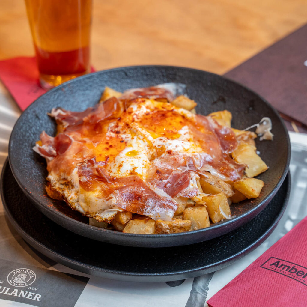 Huevos rotos con jamón